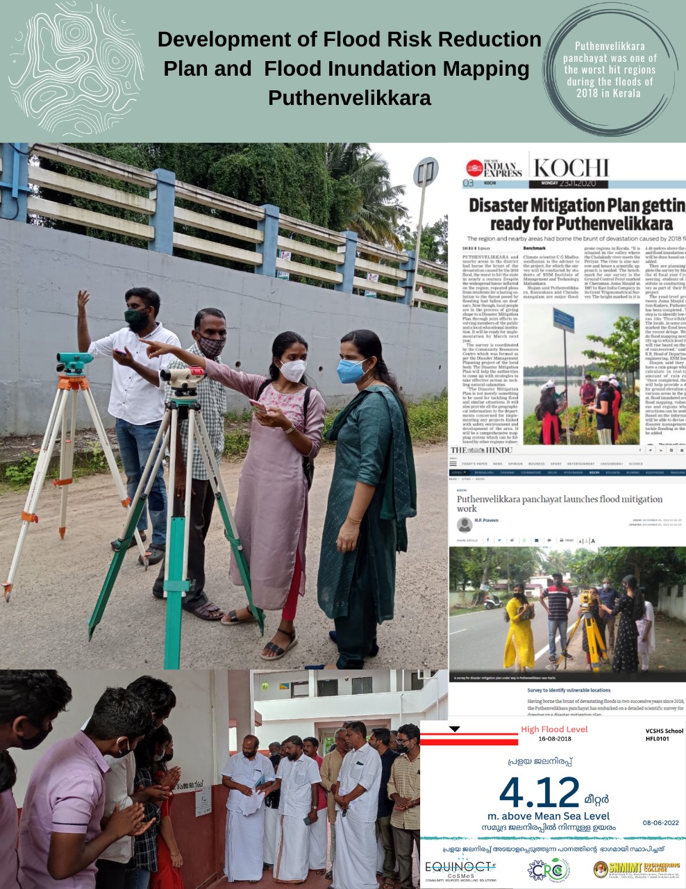 Surveys were carried out in May 2023 by volunteers led by CRC Puthenvelikkara. They identified maximum water levels recorded across the village during the 2018 flood event.